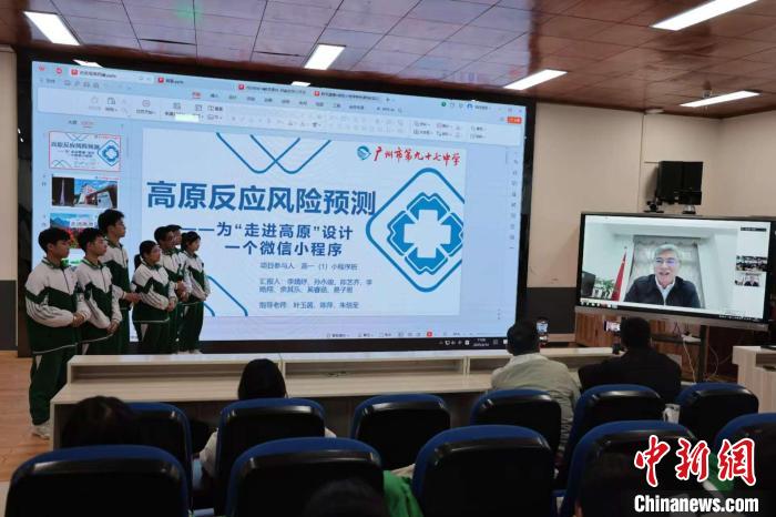 圖為四川大學(xué)華西醫(yī)院院長、高原醫(yī)學(xué)中心主任羅鳳鳴教授通過視頻連線點評、指導(dǎo)高中生的微信小程序作品。廣州97中 供圖
