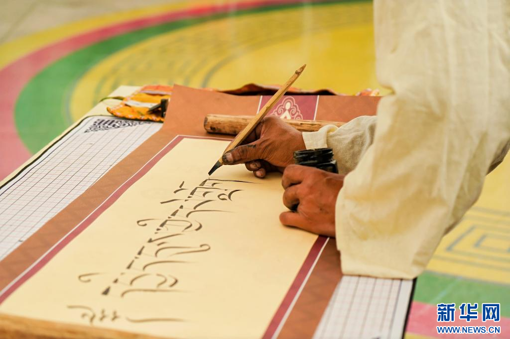 在活動(dòng)現(xiàn)場寫下藏文書法“春日書會(huì)”。(受訪者供圖)