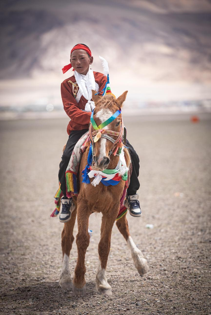 作品簡介(作者自述):賽馬是一項(xiàng)技巧性的運(yùn)動(dòng),也是每年林周縣望果節(jié)最為隆重的一項(xiàng)體育活動(dòng)?;顒?dòng)一般以鄉(xiāng)為單位,各鄉(xiāng)選出優(yōu)秀的騎手和馬匹統(tǒng)一到指定的鄉(xiāng)進(jìn)行比賽。此組照片為首屆彭域熱柏久賽馬節(jié)隆重舉行。