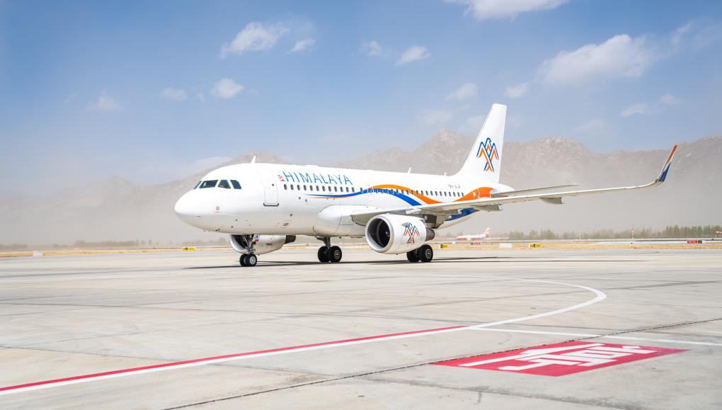 這是3月31日拍攝的執(zhí)飛拉薩至博卡拉國際航線首飛任務(wù)的喜馬拉雅航空H9731次航班。新華社記者丁增尼達(dá) 攝