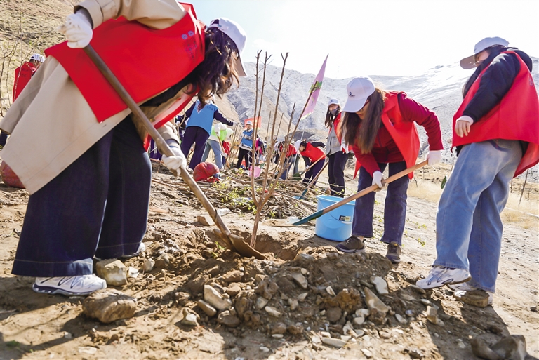 4月29日,由中國建設(shè)銀行西藏自治區(qū)分行、中國建設(shè)銀行總行數(shù)據(jù)管理部、中國建設(shè)銀行上海大數(shù)據(jù)智慧中心、西藏自治區(qū)慈善總會、西藏傳媒集團(tuán)聯(lián)合舉辦的“遇‘建’南北山·‘?dāng)?shù)’植生態(tài)林——我在西藏有棵樹”公益植樹活動在拉薩市白定東2-1號片區(qū)建行南北山綠化項目地舉行。