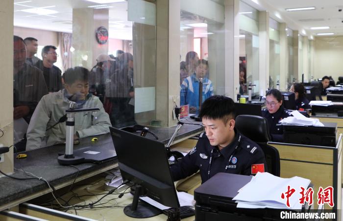 圖為西藏出入境邊防檢查總站辦證大廳,民眾正排隊辦理證件。徐錫萬 攝