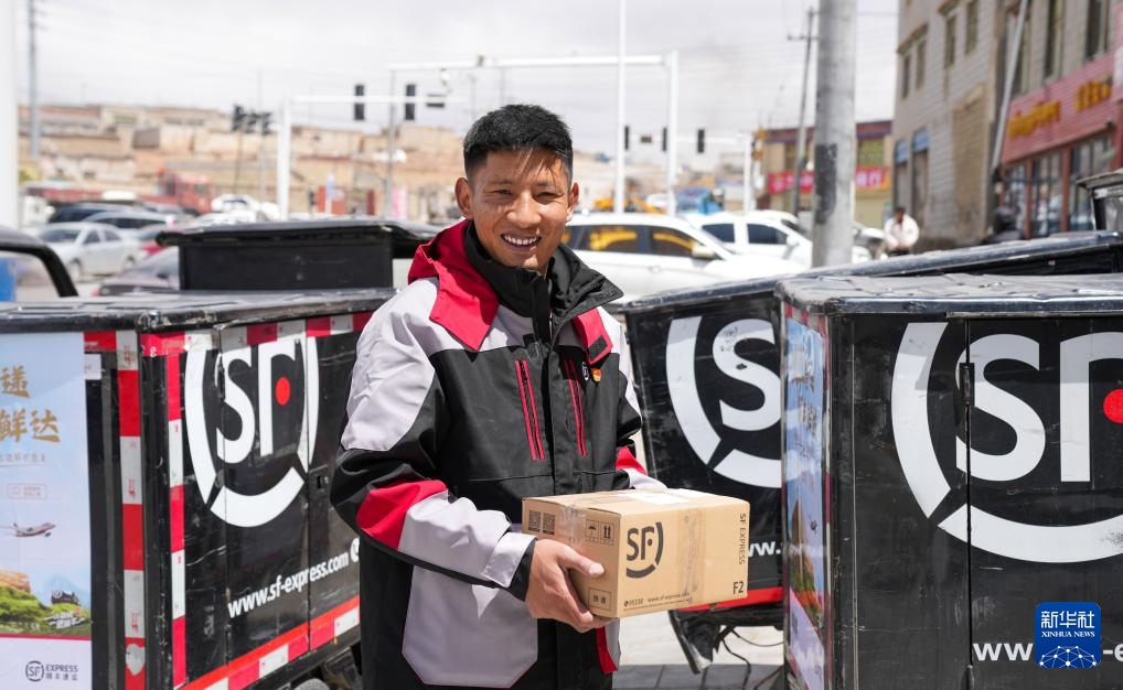 拉巴準備去派件(4月24日攝)。新華社記者 晉美多吉 攝