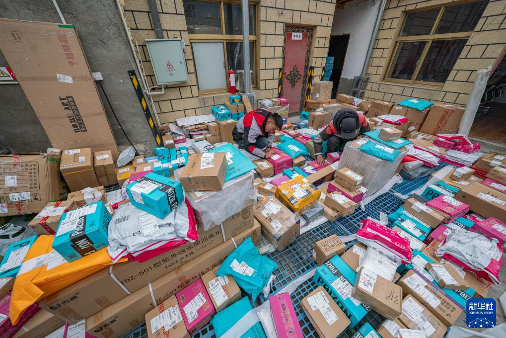 拉巴在站點內(nèi)整理快遞(4月24日攝)。新華社記者 晉美多吉 攝