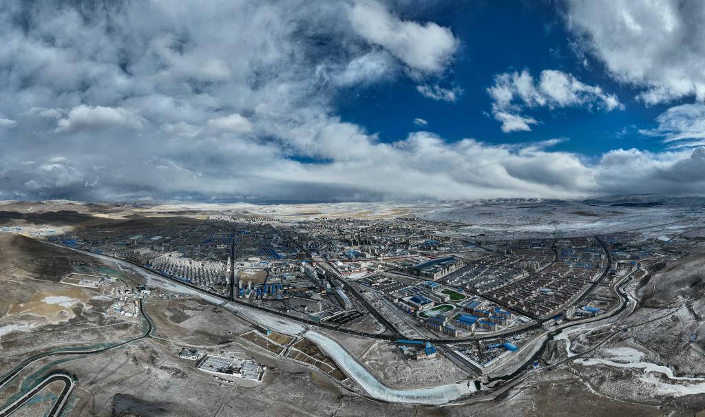 這是2月12日拍攝的那曲城區(qū)(無(wú)人機(jī)照片)。鳥(niǎo)瞰這座“云端之城”,一派蒼茫壯闊景象。新華社記者 晉美多吉 攝