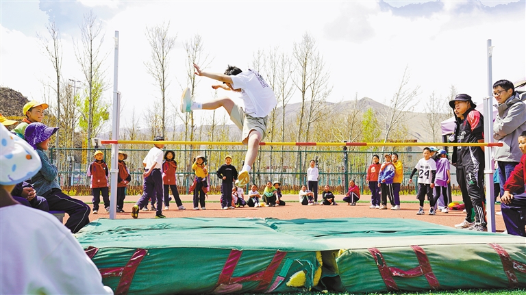 圖為學(xué)生在參加跳高比賽。記者 格桑倫珠 攝