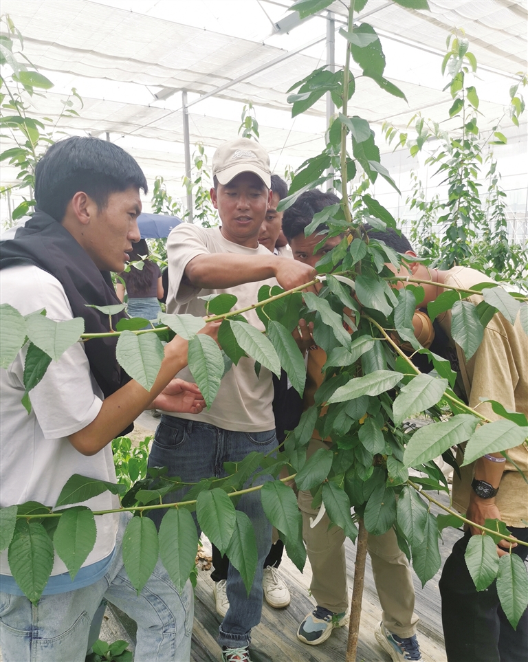 那段時(shí)間,他查閱了大量資料,進(jìn)行了多次實(shí)地調(diào)研,提出了引進(jìn)山東、陜西等地品質(zhì)高、產(chǎn)量好且抗病蟲害果樹(shù)的想法。他解釋道:“引進(jìn)這些品種,一方面可以大大降低病蟲害的風(fēng)險(xiǎn),提高產(chǎn)量和品質(zhì)。另一方面,通過(guò)研究水果本身的生長(zhǎng)規(guī)律,選擇不同的品種進(jìn)行合理配置,能達(dá)到相互促進(jìn)的效果?!苯?jīng)過(guò)一段時(shí)間的試種,格桑群培的想法取得了顯著成效,得到了大家的高度贊譽(yù)。