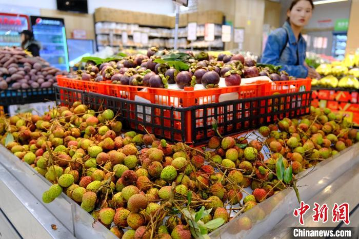 5月27日,西藏拉薩一連鎖超市銷售來自海南的“妃子笑”荔枝。中新社記者 江飛波 攝