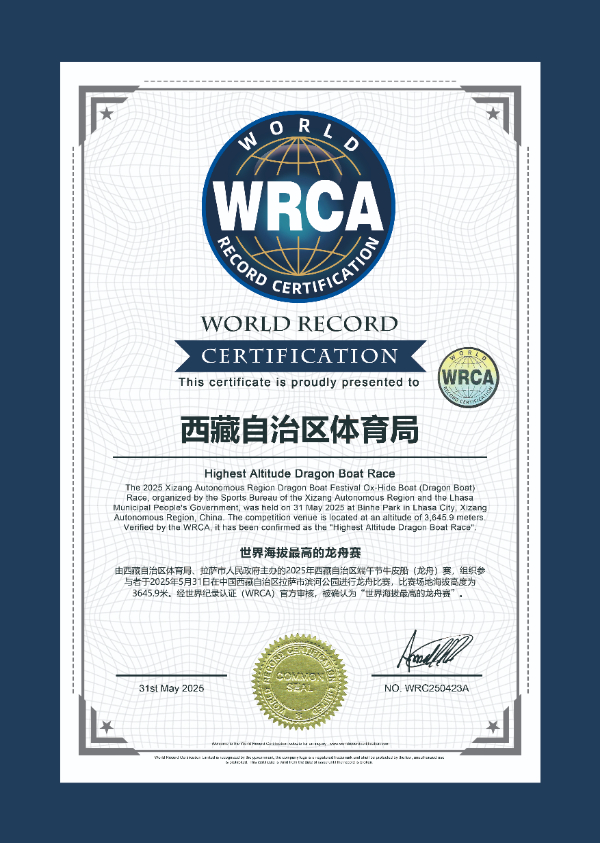 經(jīng)世界紀錄認證機構(gòu)(WRCA)認證為