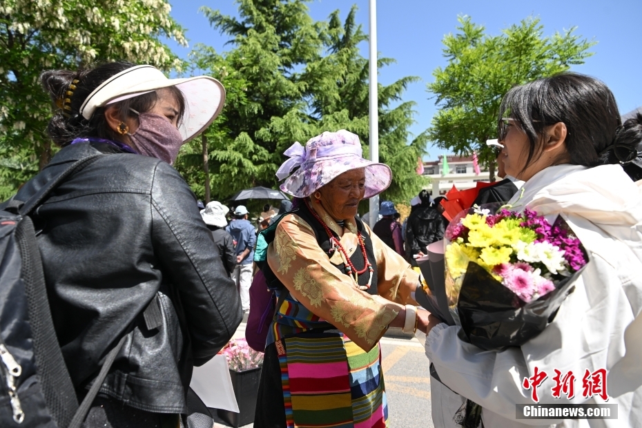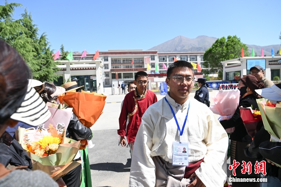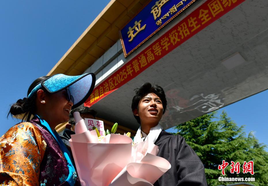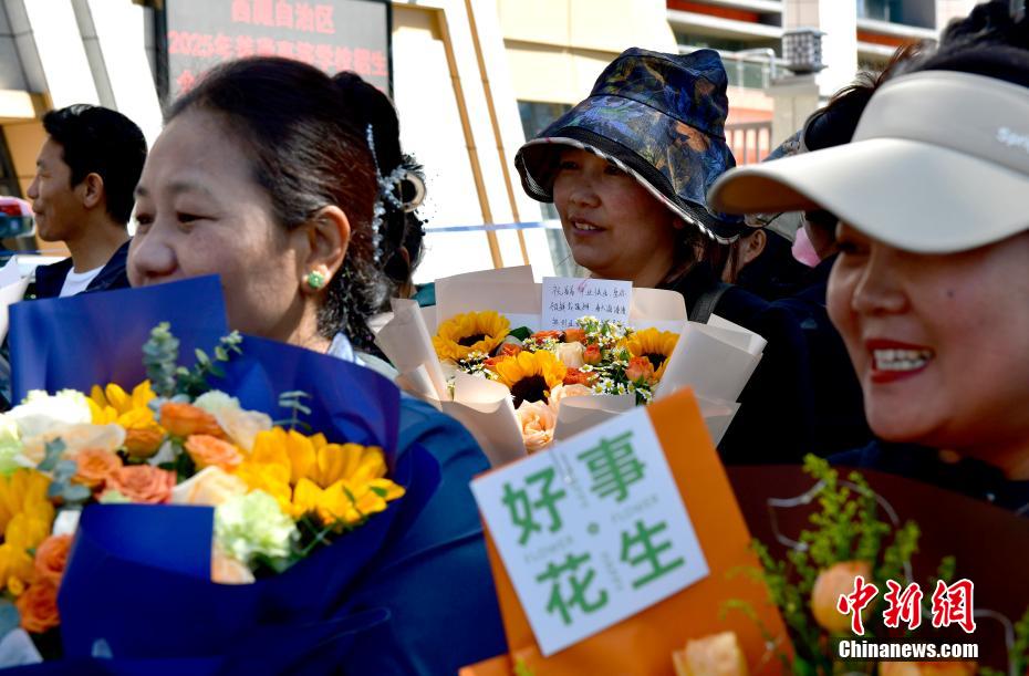 6月9日,西藏拉薩江蘇實驗中學(xué)考點外親友為考生送鮮花。當日,西藏自治區(qū)2025年普通高考完成所有科目考試,2025年西藏高考落下帷幕。中新社記者 貢嘎來松 攝