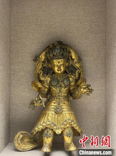 圖為丹薩梯寺文物陳列館內(nèi)展出的丹薩梯寺造像。 謝牧 攝