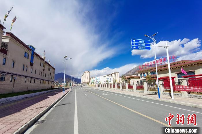 紅頂白墻的樓房整齊排列,柏油馬路平坦寬闊,商鋪招牌林立,文化廣場(chǎng)上健身器材锃亮如新……這是西藏自治區(qū)拉薩市堆龍德慶區(qū)乃瓊街道色瑪社區(qū)如今的面貌,很難想象,在2006年青藏鐵路格拉段(格爾木至拉薩)通車(chē)前,這里曾是塵土飛揚(yáng)的村落。