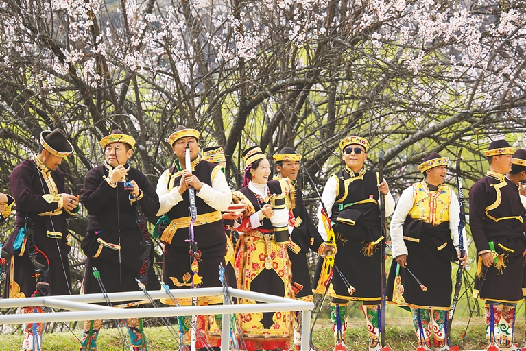 圖為2025年林芝桃花旅游文化節(jié)巴宜區(qū)分會場工布響箭展演活動(dòng)現(xiàn)場。記者 謝筱純 攝