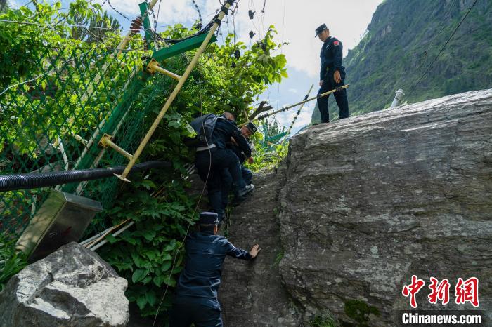 圖為9日,西藏移民管理警察山洪現(xiàn)場排查。肖富貴 攝