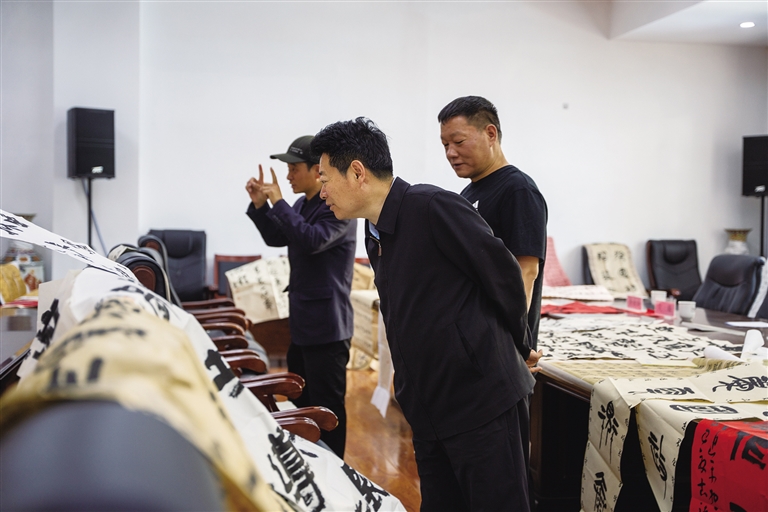 下午的漢文書法評選同樣精彩。兩百多幅參選作品,涵蓋楷書、行書、隸書、草書、篆書五種字體,風格多樣,展現(xiàn)出扎實的書法功底和深厚的文化底蘊。中國書協(xié)會員、西藏書協(xié)理事田中鶴認真地審閱著每一幅作品,他感慨道:“活動自啟動便獲全國書法愛好者廣泛關注,參賽作品不僅數量可觀,質量更值得肯定?!逼渲?,一等獎的楷書作品工整端莊,緊扣“民族團結”主題,既彰顯書法藝術魅力,又傳遞出“高原紅石榴”象征的團結奮進精神,給評審團留下深刻印象。