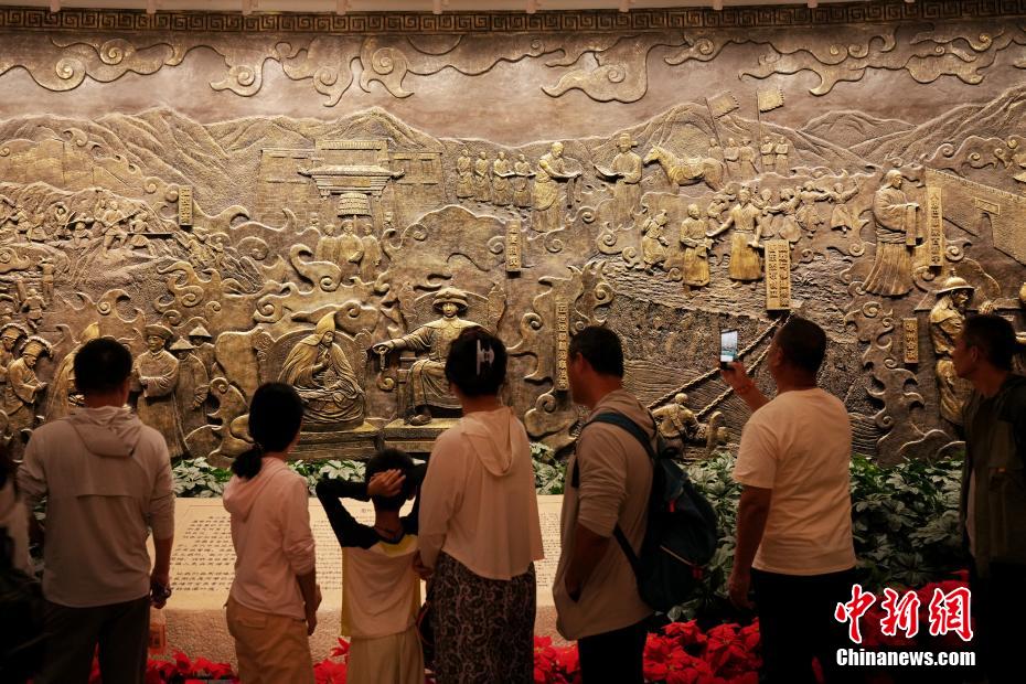 7月15日,在位于西藏拉薩的西藏博物館,觀(guān)眾參觀(guān)西藏歷史畫(huà)卷浮雕。據(jù)了解,西藏博物館設(shè)有基本陳列《雪域長(zhǎng)歌—西藏歷史文化展》《離太陽(yáng)最近的人—西藏民俗文化展》,充分展示西藏地區(qū)歷史發(fā)展進(jìn)程與文化面貌。中新社記者 張祥毅 攝