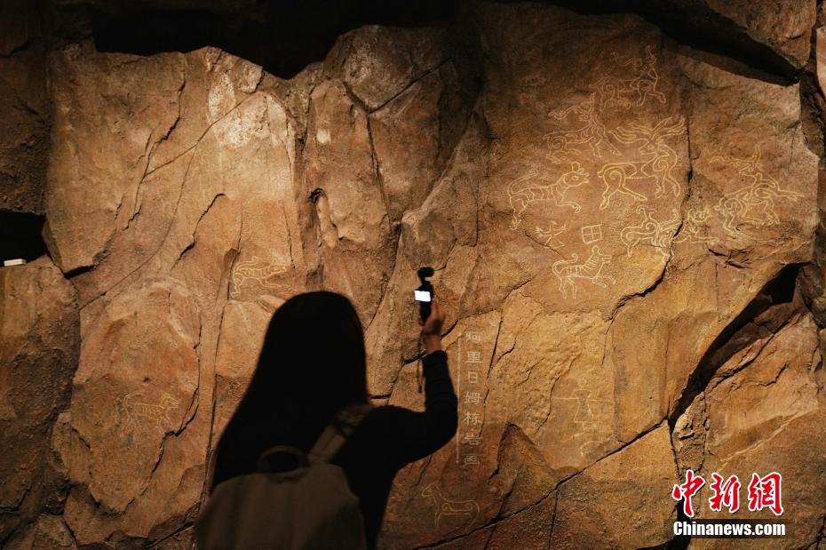 7月15日,在位于西藏拉薩的西藏博物館,觀(guān)眾拍攝復(fù)原的阿里日姆棟巖畫(huà)。據(jù)了解,西藏博物館設(shè)有基本陳列《雪域長(zhǎng)歌—西藏歷史文化展》《離太陽(yáng)最近的人—西藏民俗文化展》,充分展示西藏地區(qū)歷史發(fā)展進(jìn)程與文化面貌。中新社記者 張祥毅 攝