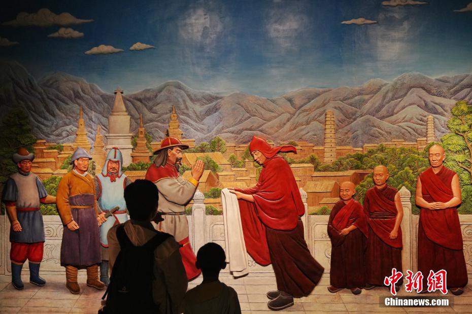 7月15日,在位于西藏拉薩的西藏博物館,觀(guān)眾參觀(guān)“涼州會(huì)談”場(chǎng)景,“涼州會(huì)談”結(jié)束了吐蕃地方政權(quán)對(duì)西藏的長(zhǎng)期分治局面,順應(yīng)了國(guó)家統(tǒng)一的歷史潮流。據(jù)了解,西藏博物館設(shè)有基本陳列《雪域長(zhǎng)歌—西藏歷史文化展》《離太陽(yáng)最近的人—西藏民俗文化展》,充分展示西藏地區(qū)歷史發(fā)展進(jìn)程與文化面貌。中新社記者 張祥毅 攝
