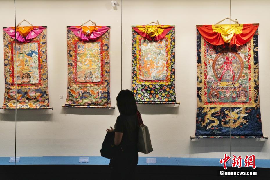 7月15日,在位于西藏拉薩的西藏博物館,觀(guān)眾品鑒唐卡藝術(shù)。據(jù)了解,西藏博物館設(shè)有基本陳列《雪域長(zhǎng)歌—西藏歷史文化展》《離太陽(yáng)最近的人—西藏民俗文化展》,充分展示西藏地區(qū)歷史發(fā)展進(jìn)程與文化面貌。中新社記者 張祥毅 攝