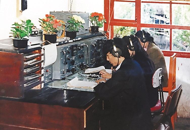 20世紀(jì)70-80年代業(yè)務(wù)人員通過莫爾斯電臺傳輸氣象資料。昌都市氣象局供圖