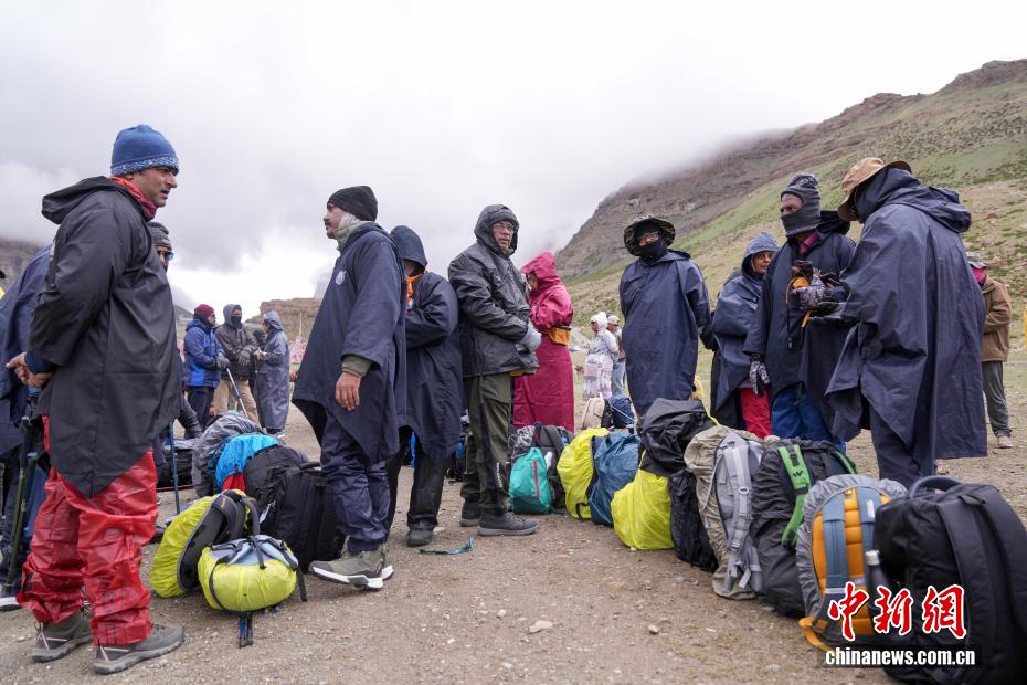 7月21日,在岡仁波齊山腳下,來(lái)自印度的徒步旅行者做出發(fā)前的準(zhǔn)備工作。岡仁波齊位于西藏阿里地區(qū)普蘭縣境內(nèi),是岡底斯山的主峰,也是藏傳佛教的神山之一,每年吸引眾多信徒前往轉(zhuǎn)山,并衍生出徒步旅行的經(jīng)典路線。每年來(lái)自國(guó)內(nèi)外的徒步旅行者為當(dāng)?shù)貏?chuàng)造就業(yè)機(jī)會(huì)的同時(shí),也推動(dòng)了文旅產(chǎn)業(yè)的發(fā)展。中新社記者 張祥毅 攝