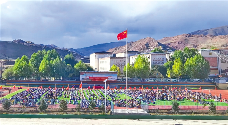 七十余載櫛風(fēng)沐雨,丁青縣小學(xué)早已舊貌換新顏。昔日的鐵皮房、泥土地,已被占地近3萬平方米、建筑面積超1.2萬平方米的現(xiàn)代化校園取代。寬敞明亮的教學(xué)樓、標(biāo)準(zhǔn)化的運動場、齊全的各類功能教室,促進(jìn)了孩子們的全面發(fā)展。截至2024年9月,學(xué)校擁有學(xué)生2650余名,教學(xué)班級49個。一支136人的高素質(zhì)教師隊伍扎根于此,教書育人。