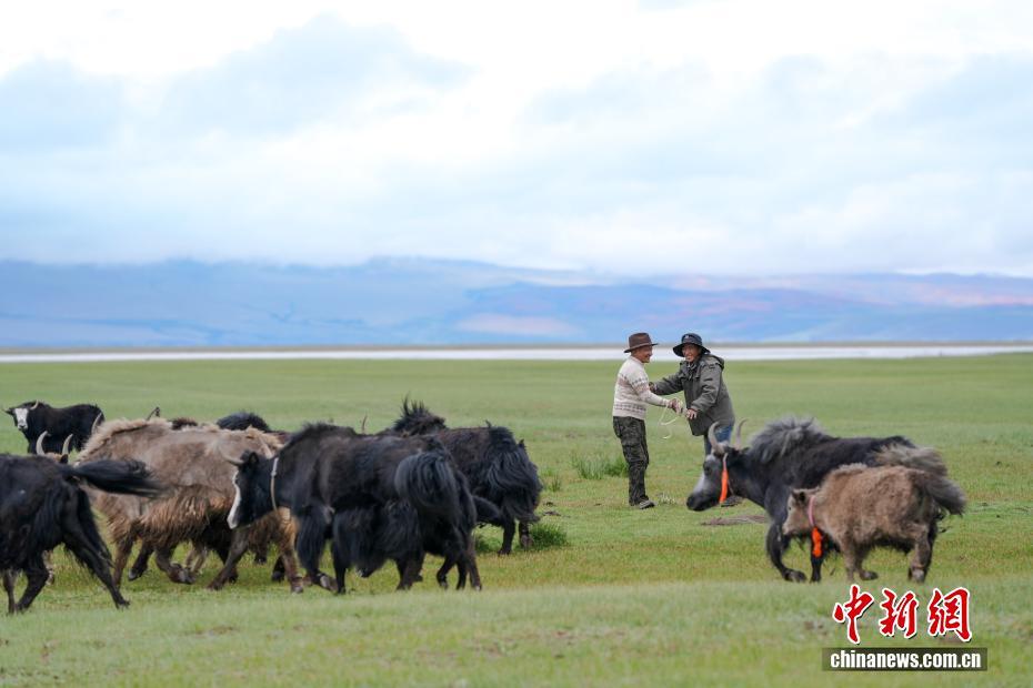 7月22日,在西藏阿里地區(qū)普蘭縣霍爾鄉(xiāng)瑪旁雍錯濕地,牧民在放牧?xí)r交流。為實現(xiàn)更大的經(jīng)濟效益,霍爾鄉(xiāng)近年來探索建立牦牛養(yǎng)殖專業(yè)合作社,按當(dāng)?shù)刈匀粭l件合理分配牦牛放牧地點,并將牛奶進行加工銷售,2023年該合作社的年總收入達到60余萬元人民幣,帶動牧民人均增收2萬余元人民幣。中新社記者 張祥毅 攝