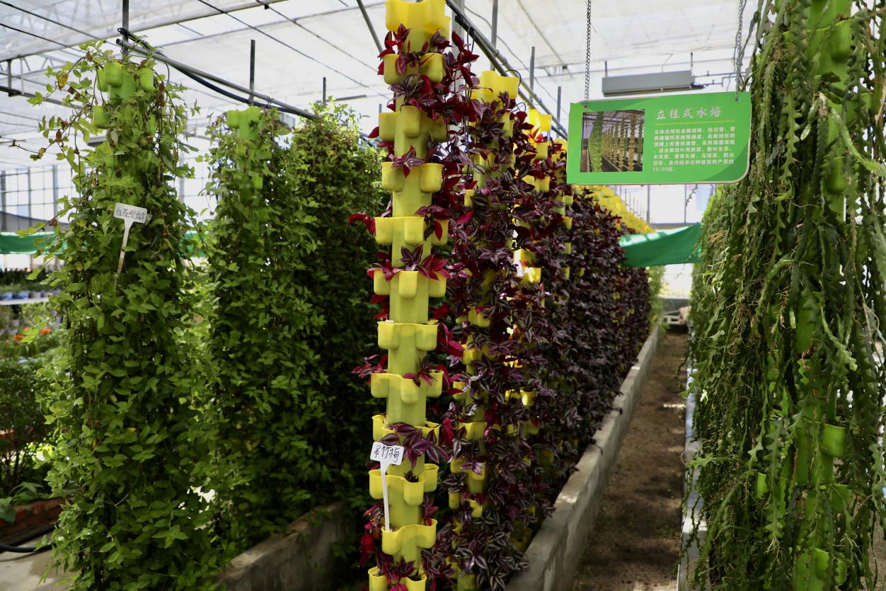 圖為才納園區(qū)內(nèi)立柱式水培 。人民網(wǎng)記者  次仁羅布攝。