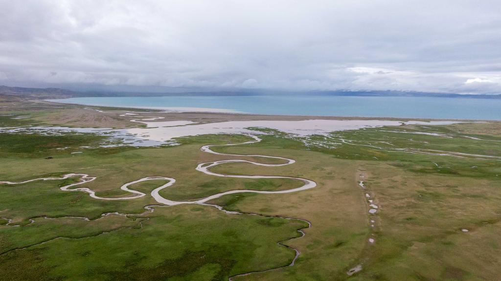 2025年7月22日拍攝的瑪旁雍錯(cuò)濕地一景(無(wú)人機(jī)照片)。新華社記者 旦增尼瑪曲珠 攝