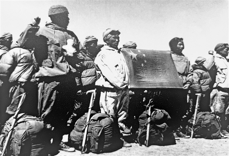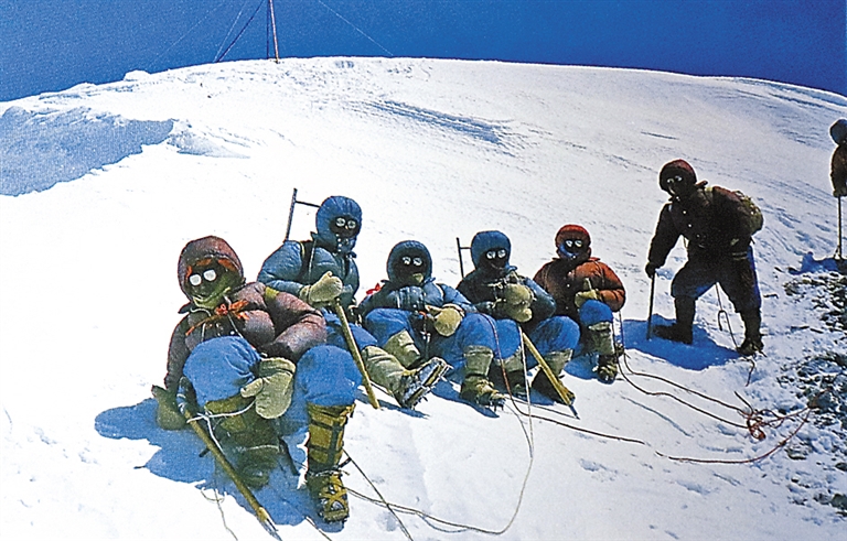 據(jù)羅則介紹,50年前,“九勇士”成功從北坡登頂珠峰之后,隨即開(kāi)展了向黨和人民匯報(bào)勝利的喜訊、豎立金屬覘標(biāo)測(cè)量珠峰高度、展示五星紅旗、拍攝在頂峰活動(dòng)資料、搜集山頂冰雪樣品、遙測(cè)地球最高點(diǎn)上的人類(lèi)心電圖、測(cè)量峰頂上的覆雪深度、采集峰頂花崗巖石標(biāo)本、拍攝頂峰全景的電影、把毛主席石膏塑像安放在峰頂上、為登頂勇士拍攝紀(jì)念照片11項(xiàng)工作。