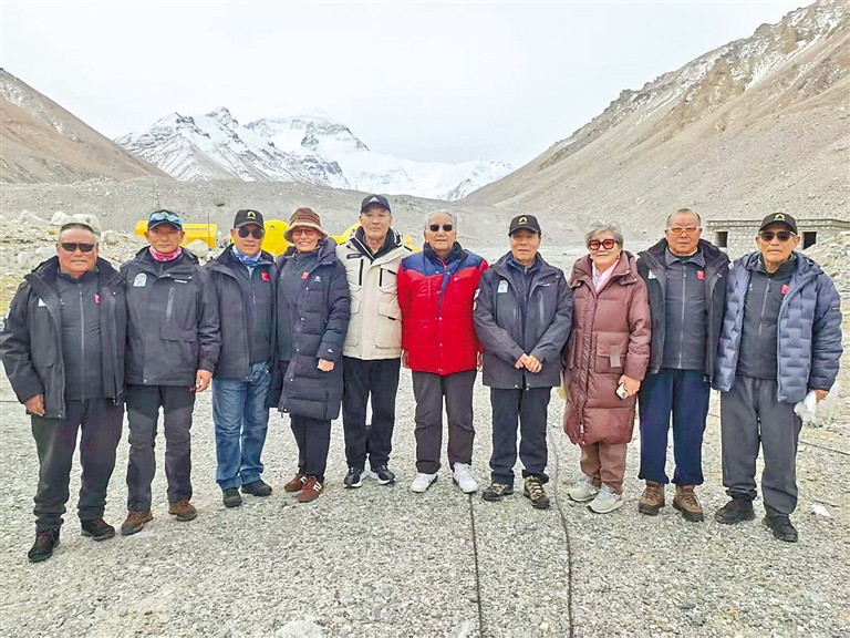 2025年5月6日,登山勇士們參加紀(jì)念中國(guó)人再登珠穆朗瑪峰50周年系列活動(dòng)之“登山勇士緬懷活動(dòng)”時(shí)合影。記者 鄭璐 攝(除本圖外的其他圖片均由西藏自治區(qū)登山隊(duì)提供)