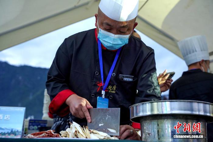 圖為2025年林芝松茸美食文化節(jié)暨特色商品展銷活動期間,廚師現(xiàn)場制作松茸菜品。林芝市巴宜區(qū)城鄉(xiāng)供銷有限公司供圖