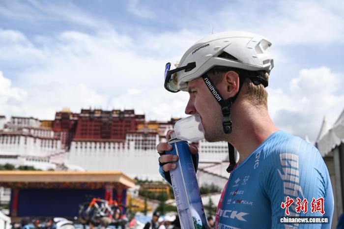 圖為完賽后參賽車手在布達拉宮廣場吸氧。中新社記者 貢嘎來松 攝