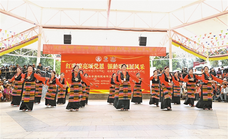 近日,拉薩市社會福利院在龍王潭公園舉辦“紅歌嘹亮頌黨恩,銀齡歌舞展風(fēng)采”主題活動?;顒蝇F(xiàn)場,老年學(xué)員們通過紅歌聯(lián)唱、傳統(tǒng)鍋莊舞表演及民族手工藝品展示,全面展現(xiàn)“老年文化學(xué)堂”開設(shè)雙語、舞蹈、手工等課程的階段性成果。據(jù)了解,該活動旨在推廣“文化養(yǎng)老”服務(wù)模式,吸引更多社會老人參與福利院特色課程。