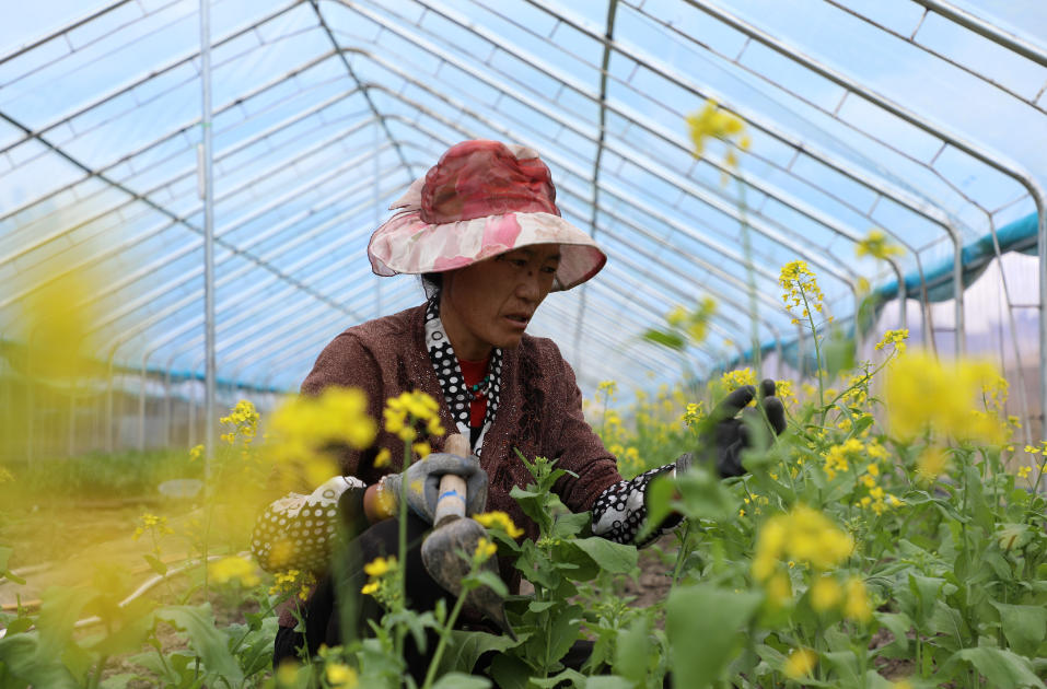 當(dāng)?shù)卮迕裨诟咴教煊N基地務(wù)工。人民網(wǎng)記者 次仁羅布攝