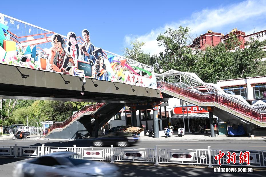 圖為以民族團(tuán)結(jié)為主題的人行天橋。中新社記者 貢嘎來(lái)松 攝