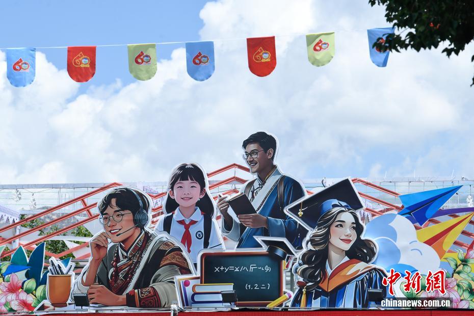 圖為以教育為主題的人行天橋。中新社記者 貢嘎來(lái)松 攝