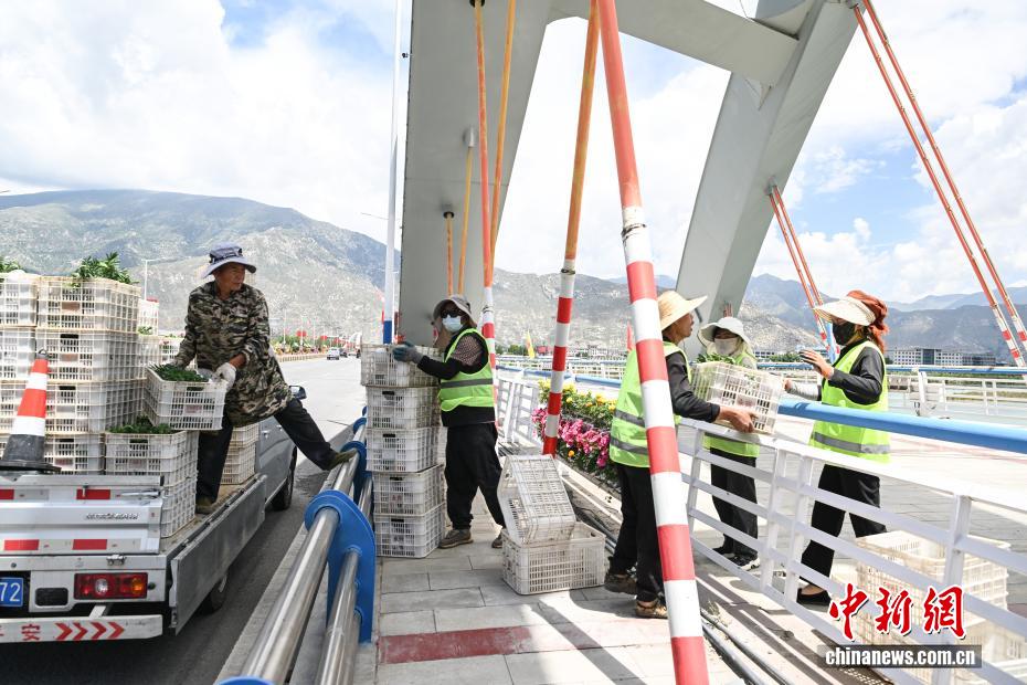 圖為工作人員正緊鑼密鼓地布置花壇。中新社記者 貢嘎來(lái)松 攝