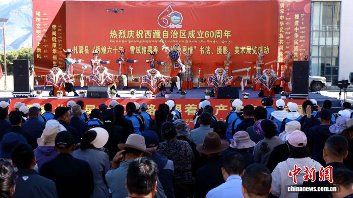圖為展覽開(kāi)幕式上表演傳統(tǒng)藏戲。扎囊縣委宣傳部 供圖