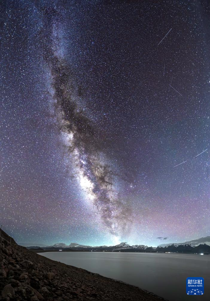 這是在佩枯錯拍攝的銀河(8月14日攝)。周邊是英仙座流星雨的幾顆流星。新華社發(fā)(馬理朝攝)