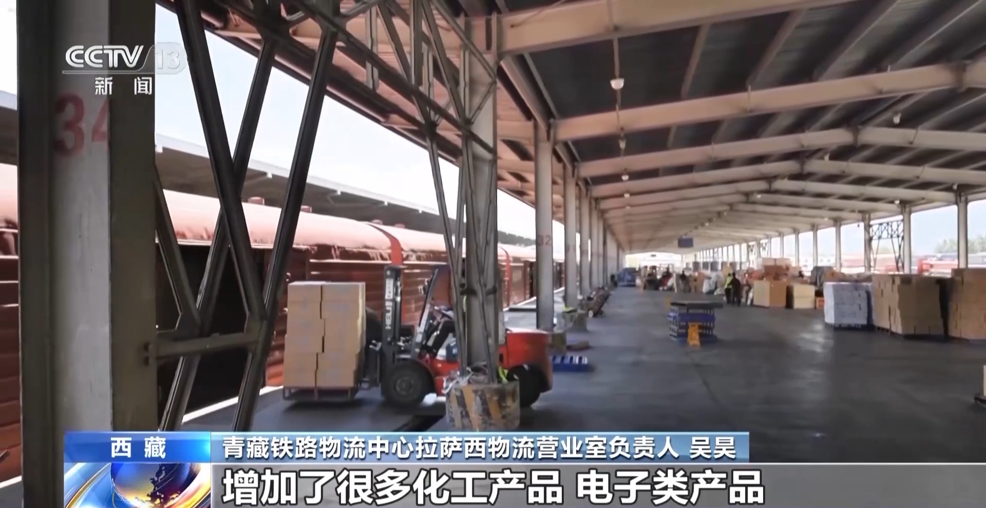 青藏鐵路物流中心拉薩西物流營(yíng)業(yè)室負(fù)責(zé)人 吳昊:以前我們這邊到達(dá)量還是比較單一的,也就是一些糧食、飲料、建材之類的,現(xiàn)在到達(dá)的物品比較多元,增加了很多化工產(chǎn)品、電子類產(chǎn)品。