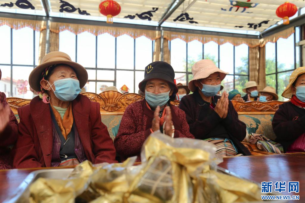 在西藏山南市乃東區(qū)特困人員集中供養(yǎng)服務中心,老人們收到了粽子和節(jié)日的問候(2021年6月14日攝)。新華社記者 張兆基 攝