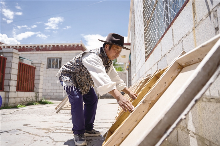 8月13日,記者來(lái)到尼木縣普松鄉(xiāng)曲水村的一個(gè)院落,58歲的斯曲正在窗邊埋頭雕刻,刻刀飛轉(zhuǎn)游走間,精致的花紋在木板上慢慢展現(xiàn),很快雕刻作品便初具雛形。作為普松雕刻第六代傳承人,斯曲自12歲起就在爺爺和爸爸的教導(dǎo)下開(kāi)始學(xué)習(xí)這門(mén)手藝,如今的他早已成為普松雕刻自治區(qū)級(jí)非物質(zhì)文化遺產(chǎn)代表性傳承人。斯曲介紹,普松雕刻步驟煩瑣、工具講究,根據(jù)圖案復(fù)雜程度不同,耗時(shí)從6小時(shí)到3個(gè)月不等,十分考驗(yàn)雕刻者的耐心。