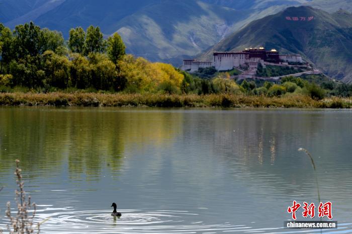 9月4日,初秋時(shí)節(jié)的西藏拉薩市拉魯濕地國(guó)家級(jí)自然保護(hù)區(qū)秋意漸濃、景色如畫。藍(lán)天白云下,草木黃綠、水鳥嬉戲,與遠(yuǎn)處的城市建筑共同構(gòu)成一幅美麗的生態(tài)畫卷。中新社記者 李林 攝