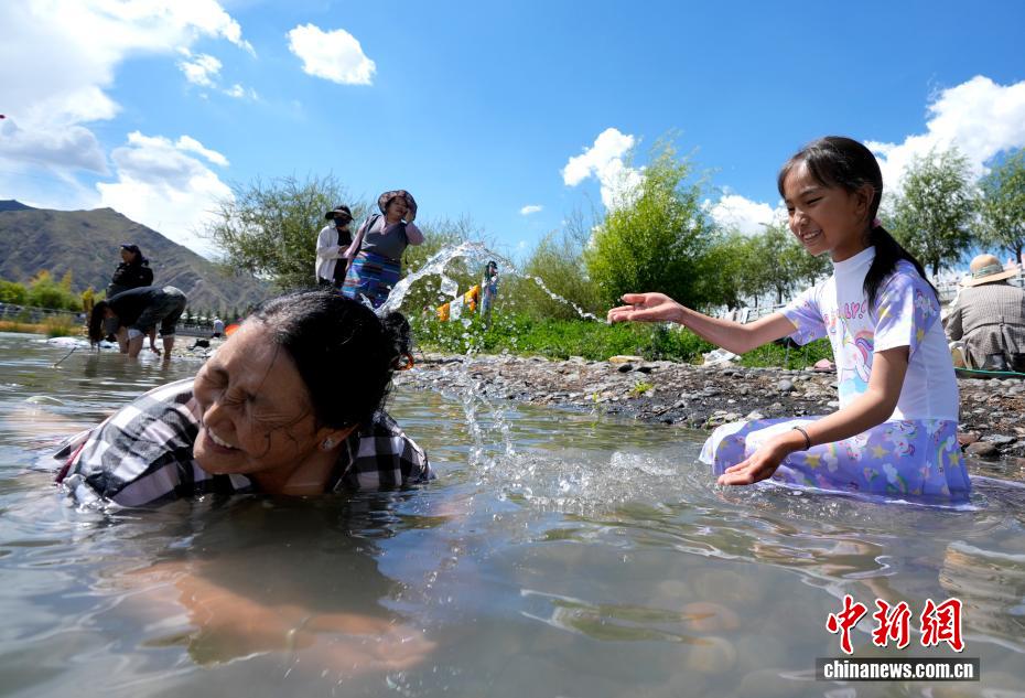 9月13日,西藏拉薩民眾迎來沐浴節(jié)。每年藏歷7月,西藏民眾迎來為期7日的傳統(tǒng)民俗節(jié)日沐浴節(jié),藏語稱為“嘎瑪日吉”?!恫蒯t(yī)養(yǎng)生》中記載,藥王星當空,江河湖海等一切水源皆具藥性,七日內沐浴可清凈業(yè)障。圖為民眾在拉薩河邊戲水。