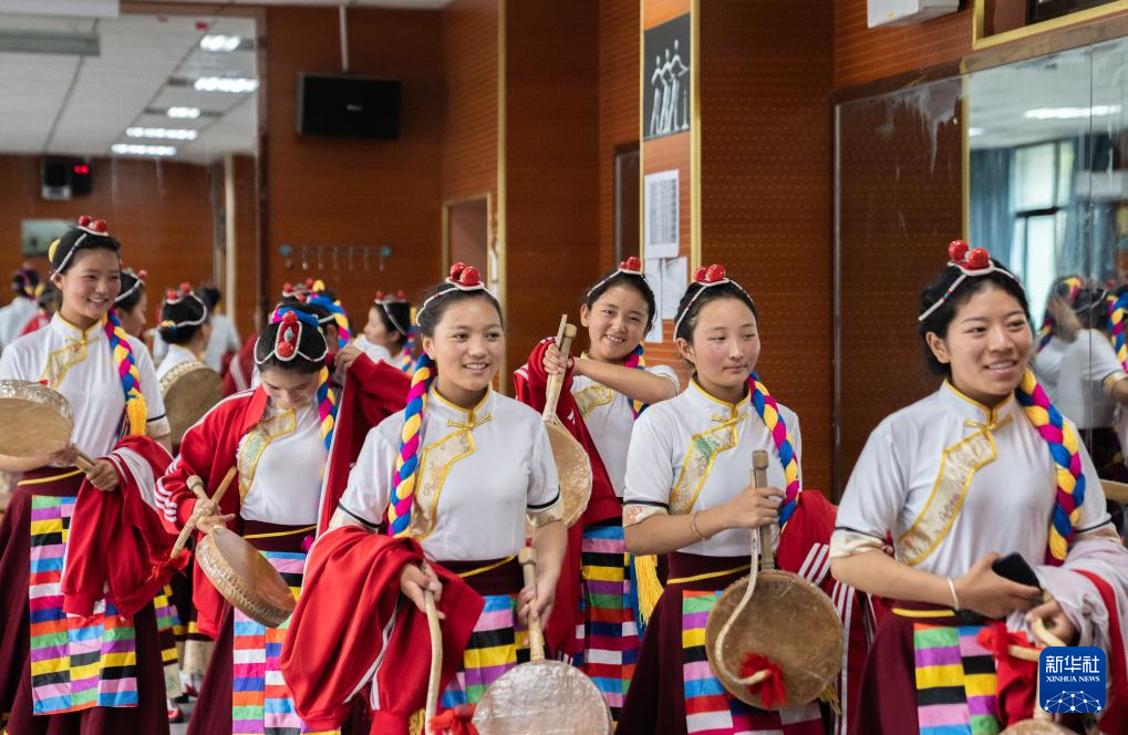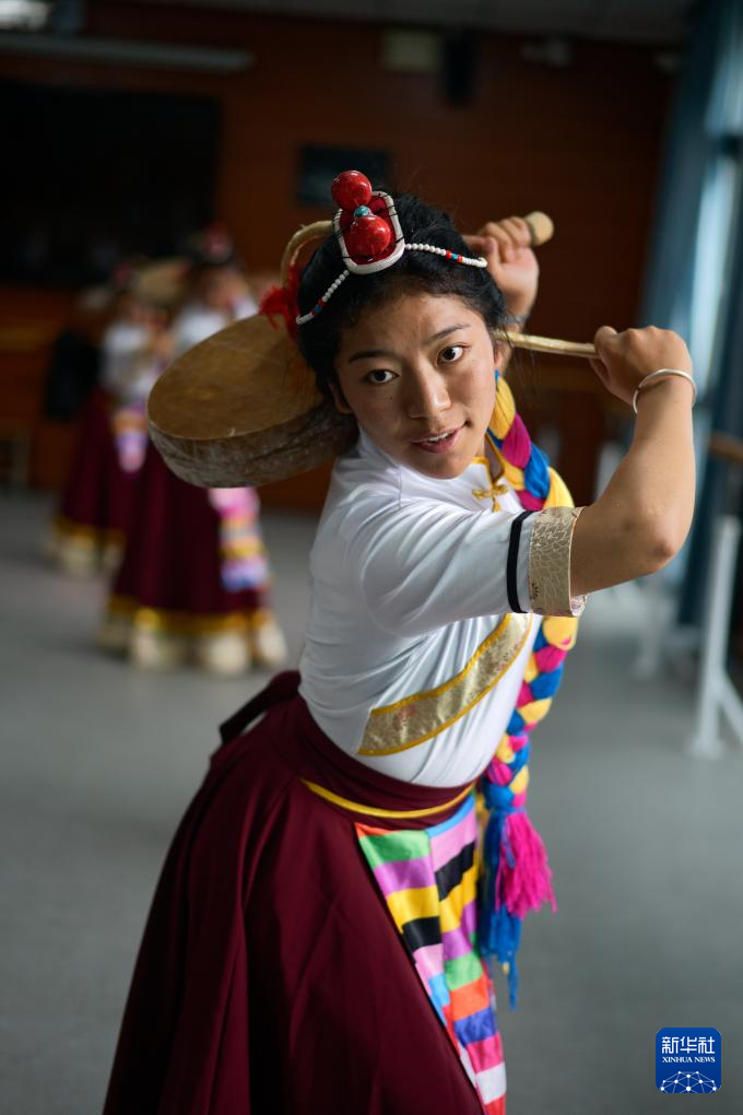 9月9日,在拉薩市第二中等職業(yè)技術學校,孩子們在練習熱巴舞。新華社記者 丁增尼達 攝