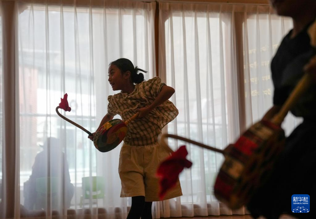 9月13日,在拉薩市塔耶梅朵美育培養(yǎng)中心,孩子們在練習熱巴舞。新華社記者 晉美多吉 攝