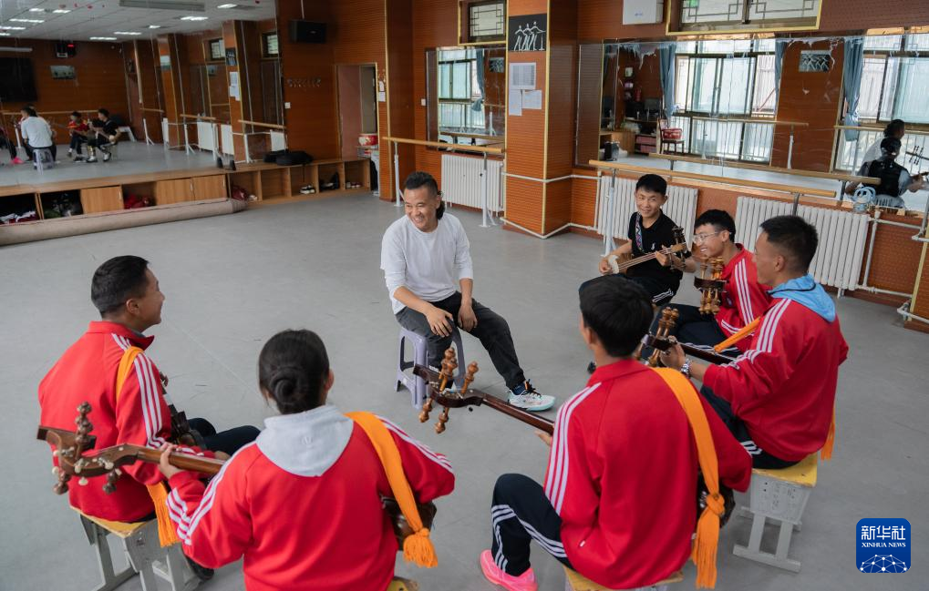 9月9日,在拉薩市第二中等職業(yè)技術(shù)學(xué)校,洛桑次仁老師在給孩子們傳授扎念琴?gòu)椬嗟囊I(lǐng)。新華社記者 丁增尼達(dá) 攝