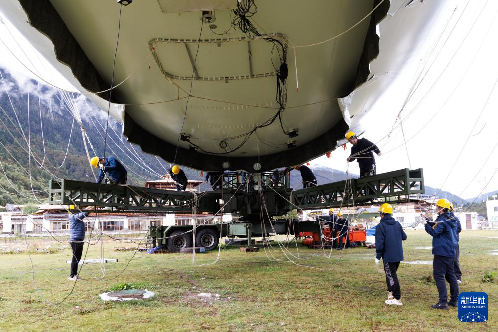9月18日,極目一號”浮空艇大氣觀測試驗現(xiàn)場,科研人員在調(diào)試觀測載荷。新華社記者 金立旺 攝