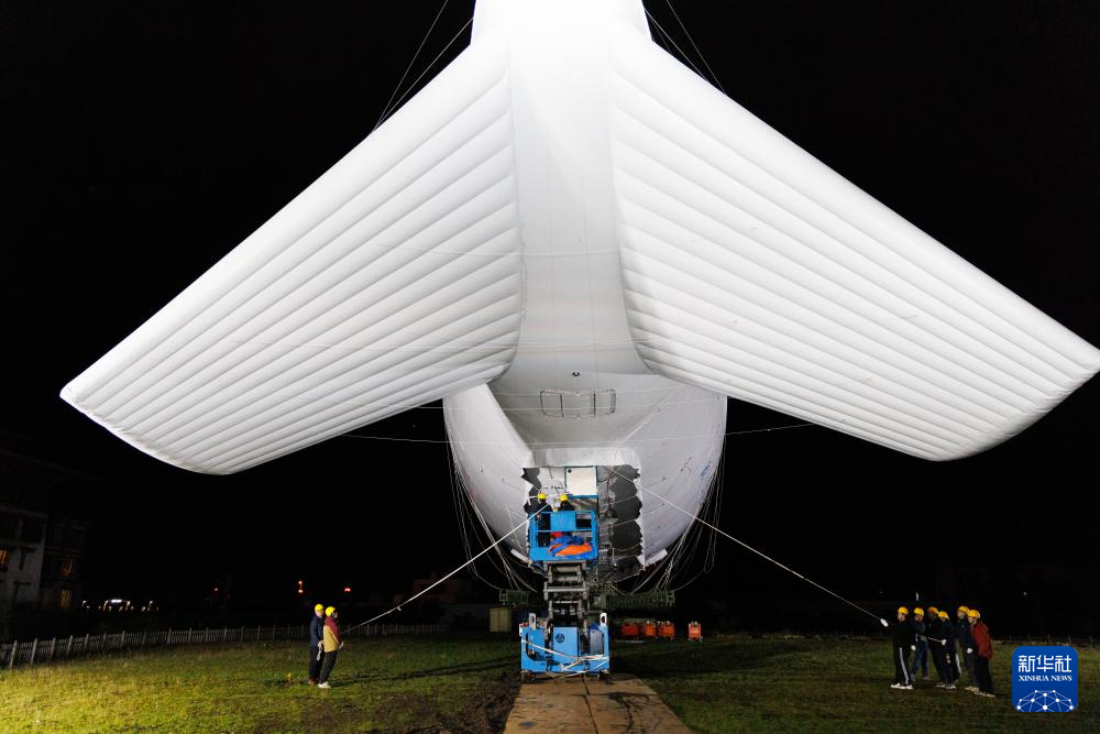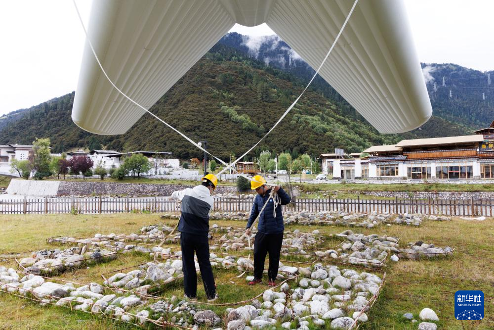9月18日,“極目一號”浮空艇大氣觀測試驗現(xiàn)場,科研人員在操作輔助系索。新華社記者 金立旺 攝